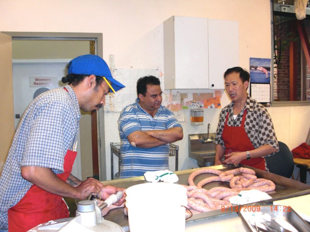 Raj is our guide today, and he explains the operation’s ethos. “We do everything pretty much by hand, considering that we’re a commercial sausage maker. It’s all fresh ingredients. We’re not using any dry or bag mixes or a spice rack — it’s all coming from a single source through a local purveyor which uses high-quality ingredients in everything, and all-natural, antibiotic-free meats in everything, too.”